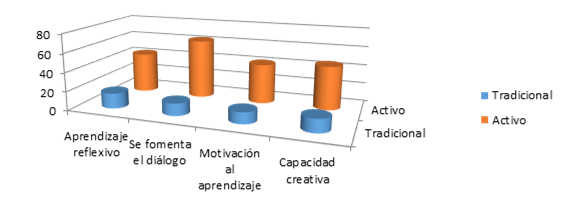 Para concretar y a razón de la comparación hecha en base a la medición de cuatro procesos indispensables para la generación de una gestión educativa basada en el aprendizaje activo; Gil-Galván (2018), evidencia que los estudiantes perciben generar mejor aprehensión mediante modelos no tradicionales; lo que implica que se pueden aplicar diversos métodos centrados en el estudiante, pues posibilita un mejor proceso de empoderamiento del conocimiento (Hernández, 2019).