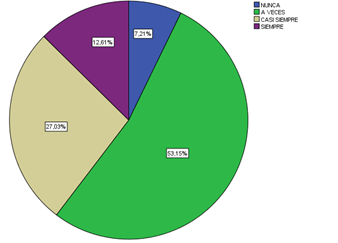 Figura 1. Frecuencia con la que ha participado en campañas de reciclaje en su establecimiento. Fuente: Elaboración propia