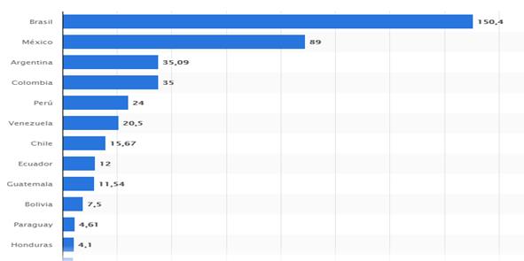 Burgueño-Salas, S. (2020). América Latina: usuarios de internet por país 2020. Statista. Recuperado de https://n9.cl/7fp9