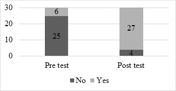 The majority of their responses were negative prior to the intervention, showing that students were hesitant to participate in speaking activities because they were unsure of their ability to perform a role playing activity. The results are presented in this section: