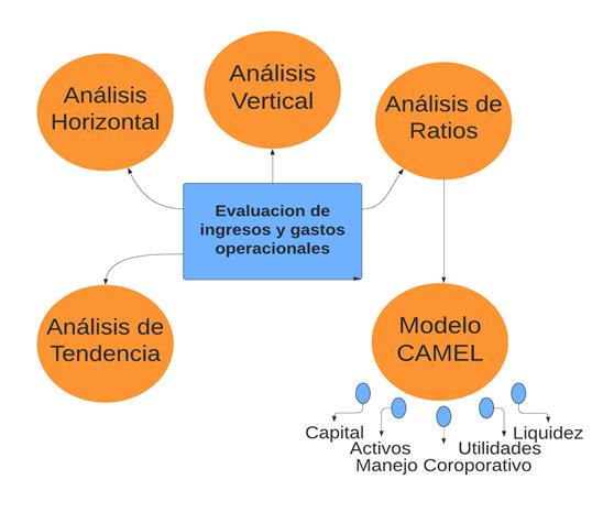 En el presente apartado se evaluará los ingresos y gastos operativos de la banca ecuatoriana a través del Modelo CAMEL, para la determinación de su desempeño financiero bajo el contexto de la COVID-19, para ello se ha planteado la estructura que se observa en la figura 4.