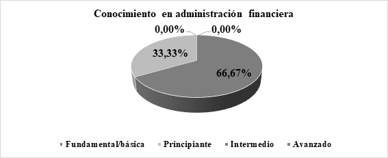 Del 100% de los encuestados un 66,67% tiene un conocimiento fundamental y básico en el tema de administración financiera, seguido del 33,33% con un conocimiento principiante, pues esto significa la poca preocupación e interés de la empresa en dicho tema, generando un desconocimiento y falta de capacitación de las personas.