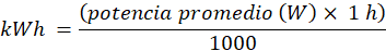 Resumen de ahorro energético (kWh y USD).