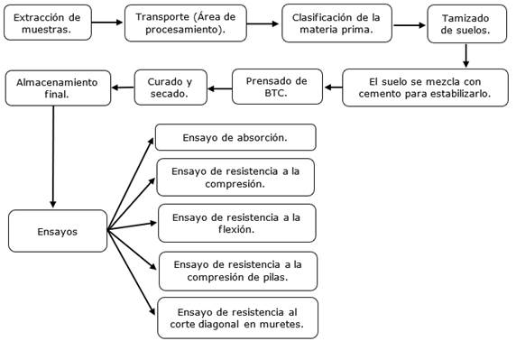 Figura 1. Proceso de fabricación y ensayos de los BTC.