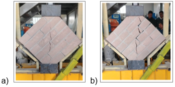 Para medir la resistencia al esfuerzo cortante en planos inclinados se realizó el ensayo de compresión diagonal en muretes, conforme al apartado 10.2 de la norma NEC-SE-MP. Se realizó el cálculo de la resistencia básica al corte diagonal (V´m). En la norma mexicana NMX-C-464:2010, se presentan los principales modos de falla en muretes bajo carga diagonal, útiles para interpretar el comportamiento experimental.