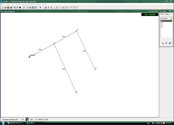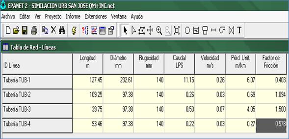 Como método de evaluación se trabajó con Software Epanet 2.0 español; el cual es desarrollado por la EPA (US EnviromentalProtection Agency) para el análisis de sistemas de distribución de agua potable. Aunque en general puede ser utilizado para el análisis de cualquier fluido no compresible con flujo a presión. El programa permite realizar el análisis hidráulico de redes de tuberías a partir de las características físicas de las tuberías y obtener la presión y los caudales en nodos y tuberías respectivamente. Adicionalmente, Epanet permite el análisis de calidad de agua a través del cual es posible determinar el tiempo de viaje del fluido desde las fuentes (tanques o embalses), hasta los nodos del sistema. Entre los elementos que puede simular el programa se encuentran fundamentalmente tubos, nodos y embalses (fuentes de cabeza fija) y adicionalmente permite utilizar elementos más complejos como bombas y válvulas.