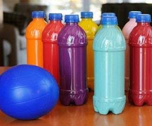 El juego de bolos. - Este juego permite a los niños poner a prueba su fuerza, para ejecutar el juego se colocan 10 botellas plásticas a una distancia de dos metros y con una pelota de plástico. Los juegos pueden ser individuales o combinados entre los diferentes miembros de la familia.