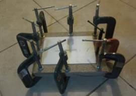 dos retazos de madera y pinzas mecánicas, hasta lograr la eliminación de los
