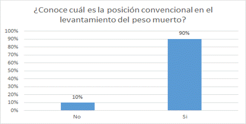 El 90% de los encuestados manifestó conocer la posición convencional en el ejercicio de peso muerto.