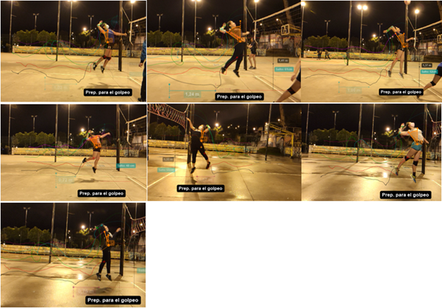 Figura 5. Ángulos, salto y velocidad en la fase de golpeo.
