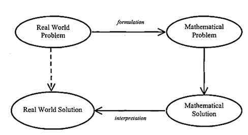 Eventualmente, en la etapa abstracta los estudiantes pueden resolver problemas sin dibujar los modelos, puesto que son una ayuda visual y no es necesario que los estudiantes describan o expliquen el modelo que construyeron. El modelado matemático es un proceso de representación de problemas de la vida real en términos matemáticos con la finalidad de solucionar esos problemas. El docente prepara la clase considerando un problema real y lo adapta al año de básica, formulando el problema matemático que puede ser resuelto utilizando cualquier técnica conocida para encontrar una solución matemática. Luego, esta solución se interpreta y se traduce en términos reales.