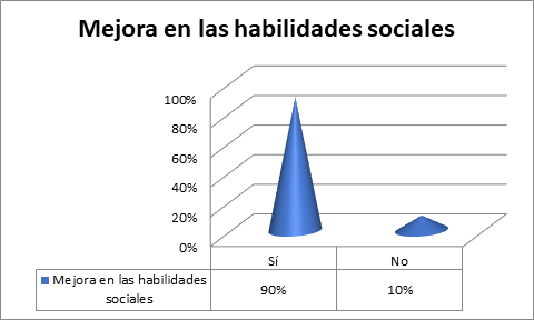En concordancia con los resultados obtenidos sobre el incremento en la autoestima, se observó que 90% de los niños experimentaron un incremento en su autoestima y confianza en oposición a un 10%. Por consiguiente, se mostraron más seguros de sí mismos y más abiertos a enfrentar nuevos desafíos.
