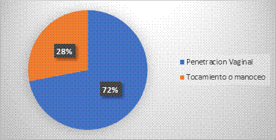 En la figura 5, se catalogando el tipo de abuso sexual de los que fueron víctimas las niñas y niños encontramos 72% habían tenido penetración vaginal con sus diferentes lesiones y complicaciones, el 28% fue solamente tocamiento o manoseo.