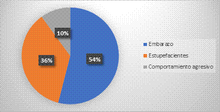 En cuanto a las consecuencias clínicas del abuso sexual, tal como se observa en la figura 6; en el 54% fue el embarazo, uno de los cuales terminó en aborto incompleto, el 36% de los pacientes con abuso sexual terminó en uso de estupefaciente, el 10% tuvo comportamiento agresivo y el resto de los pacientes presentó ansiedad, depresión, mala atención escolar y aislamiento. Los delitos sexuales son una grave violación de los derechos humanos. Pueden tener un impacto devastador en las víctimas, tanto física como emocionalmente. Es importante, prevenir los delitos sexuales y apoyar a las víctimas.