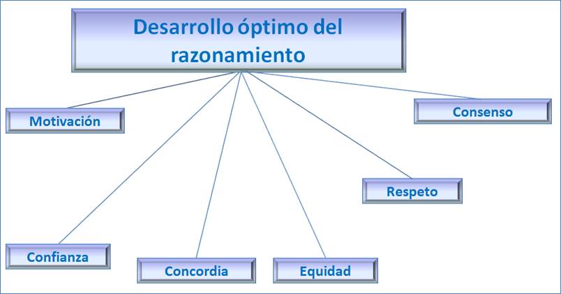 En la figura 3 que se muestra a continuación, se integran las concepciones que deberían ser tomadas en cuenta por los docentes para lograr un desarrollo óptimo del razonamiento de los estudiantes por medio de un ambiente armónico.