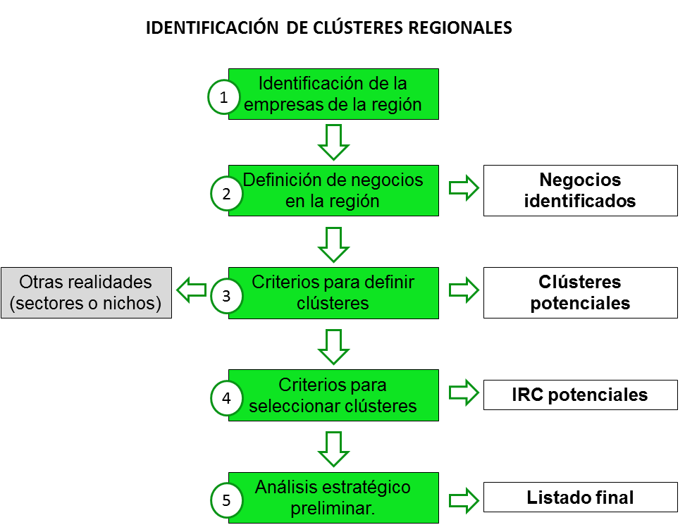 Figura 1. Pasos a seguir en la identificación de cluster regionales