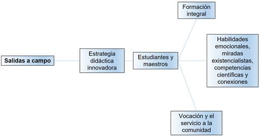 Las salidas a campo se definen como una estrategia didáctica innovadora, que ofrece una valiosa oportunidad para que los estudiantes y maestros desarrollen habilidades emocionales, miradas existencialistas, competencias científicas y conexiones más allá del aula tradicional, fomentando así una formación integral con un enfoque vocacional y al servicio de la comunidad (Márquez y Flórez, 2021; Acosta, 2020; Isea et al., 2025).