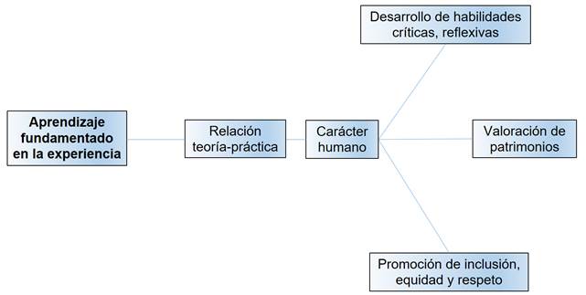 Expresado de otra manera, en la figura 3, se puede asegurar que esta manera de propiciar el aprendizaje en cada uno de los participantes dentro de las salidas a campo es garantía de un aprendizaje fundamentado en la experiencia. Este enfoque permite a los implicados la oportunidad de lograr una interrelación entre los conceptos teóricos propuestos en el aula de clase y las actividades prácticas efectuadas en el escenario donde se lleva a cabo el quehacer educativo (Sevinç y Tantekin, 2026). Asimismo, esta estrategia contribuye al logro de conexiones socioculturales, la cual tiene como meta favorecer el desarrollo humano integral y fomentar la interacción con las comunidades y su naturaleza en escenarios experienciales.