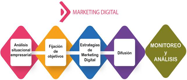 La evolución del marketing ha dado lugar al aparecimiento del Marketing Digital que emplea estrategias en medios digitales para la promoción y venta de bienes o servicios. Chaffey & Chadwick (2014) definen “El marketing digital es la ejecución del marketing utilizando medios electrónicos como la web, e-mail, televisión interactiva y medios inalámbricos junto con datos digitales de las características y comportamiento de los clientes” (p.12). El desarrollo empresarial de pequeñas y medianas empresas se encuentra respaldado en la aplicación de estrategias digitales que otorguen diferenciación de precios, promociones, ofertas para atraer clientes.