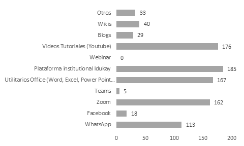 Figura 5. Herramientas tecnológicas utilizadas para el proceso enseñanza – aprendizaje durante la pandemia del COVID-19. Fuente: Elaboración propia