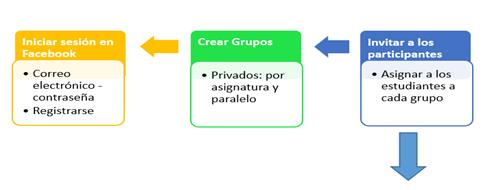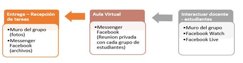Por todo lo antes mencionado, y muchas actualizaciones que presenta hoy en día Facebook durante la pandemia de Covid-19, se realiza una propuesta educativa con el fin de usar esta herramienta tecnológica muy conocida para fines educativos y lograr una buena interacción entre docente – estudiante para alcanzar un aprendizaje significativo, una enseñanza de calidad dentro de la denominada teleeducación. En la siguiente figura se presenta un esquema del uso educativo de Facebook.