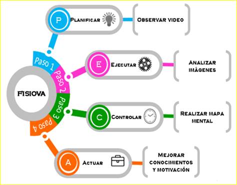 El modelo de la utilización de los objetos Virtuales de Aprendizaje se efectuó con un enfoque en cuatro aspectos claramente definidos: planificar, ejecutar, controlar y actuar, con la finalidad de mejorar el proceso enseñanza – aprendizaje en la asignatura de Física, así como también motivar a los estudiantes por la afinidad hacia esta asignatura (Figura 2). De tal manera que los resultados sean diferentes y de esta manera obtener un aprendizaje significativo durante todo su proceso.