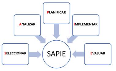 Además, tiene una cohorte transversal porque el muestreo fue recolectado una sola vez al final. Se aplicó una metodología llamada SAPIE, (García-Herrera, et al., 2018), la misma que contiene los siguientes pasos: escoger o seleccionar, analizar, planificar, implementar, evaluar que mejoran la comprensión lectora (reading) y expresiva (speaking) las mismas estrategias que ayudaron a complementar para desarrollar las destrezas de escritura (writing) y de escuchar (listening).