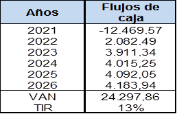 Figura 12. VAN y TIR.