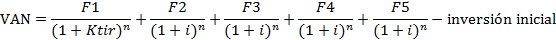 Para el cálculo del VAN y TIR, se utilizó las siguientes formulas.