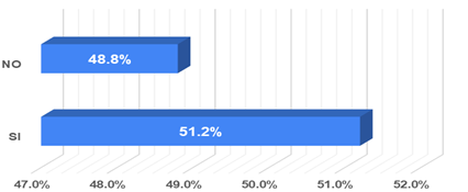 En el grafico siguiente conoceremos el estado de la innovación en el sector del emprendimiento local, 51.2% de los emprendimientos han realizado algún tipo de actividad innovadora, mientras que 48.8% no efectuaron ninguna acción innovadora. Del total de emprendimientos que realizaron actividades de innovación 157 son empresas de servicios y 107 comercios.