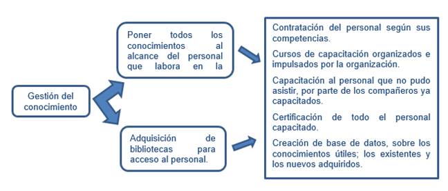 Este proceso comprende la identificación, evaluación de conocimientos, desarrollo de estrategias para conseguir optimizar la gestión de capital intelectual dentro de la empresa; siendo necesario establecer el qué, cómo, y dónde, se encuentra el conocimiento de la organización, para partir de este punto; hacia el mejoramiento de aquellos recursos que puedan ser renovados y que la organización así lo requiera (Pérez, et al., 2019).