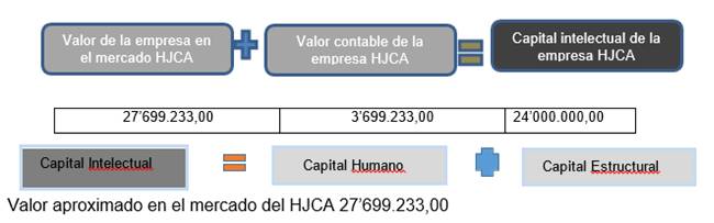 Coeficiente de eficiencia: (6.33/9) = 70% I.C. del capital intelectual en el caso del HJCA asciende a: 16’800.000,00.
