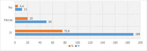 El 71% índico que entre las medidas de prevención hacen uso de mascarillas, respeto la distancia y lavados de manos como medidas de prevención a la pandemia fuera del hogar y/o al trasladarse a sus trabajos o zonas cercanas a su vivienda, mientras que el 29 % lo hacen parcialmente. Se destaca el hecho en la cual no hubo opinión alguna para la alternativa no utilizo medios de prevención. Lo datos expuestos permiten reforzar la necesidad reforzar y ejecutar la propuesta de la OMS 6 13, en relación con la participación comunitaria y su movilización para limitar la exposición, y de esta manera frenar la transmisión de la COVID-19 y proteger a las comunidades evitando su contagio y transmisión. Esto exige que todos tomen medidas de protección individual como lavarse las manos, evitar tocarse la cara, practicar una buena higiene respiratoria, distanciamiento a nivel individual y cooperar con las medidas de distanciamiento físico y de restricción de movimiento cuando se solicite adoptarlas10 14 15.