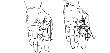 abducción/aducción del pulgar y de la flexión/extensión del índice, por medio