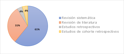 Figura 1. Porcentaje de los tipos de estudios de los artículos seleccionados.