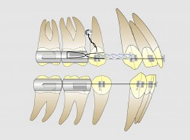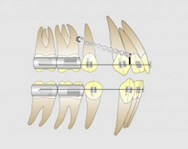 La retracción de los dientes anteriores con microimplantes se realiza de dos formas generales. En el primero, llamado anclaje directo donde la unidad activa se une al microimplante y evita el anclaje a los otros dientes (Figura 2) 11
