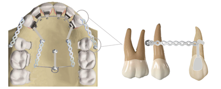 Park describió un abordaje segmentario utilizando un aparato palatino conectado a dos microimplantes palatinos medios. Los objetivos principales de este enfoque son: primero, reducir el tiempo del paciente con aparatos visibles. Esto se logra retrayendo los 6 dientes anteriores mediante ferulización en el lado lingual sin aparatos durante el período de retracción inicial. 12