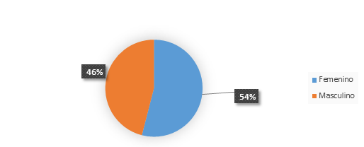 En la tabla y grafico 2, se presenta el análisis del indicador sexo. En la misma se observa un predominio del sexo femenino con el 54% de los casos y el resto representado por el 46% se indicó para el sexo masculino.