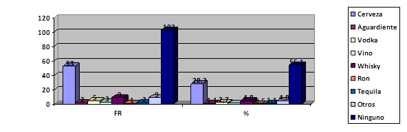 Distribución frecuencial y porcentual del tipo de bebidas alcohólicas en estudiantes del quinto al octavo semestre de la carrera de enfermería de la universidad estatal del sur de Manabí.